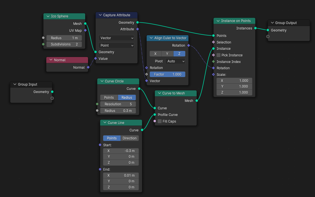 Align Euler to Vector와 Curve to Mesh를 이용했다.